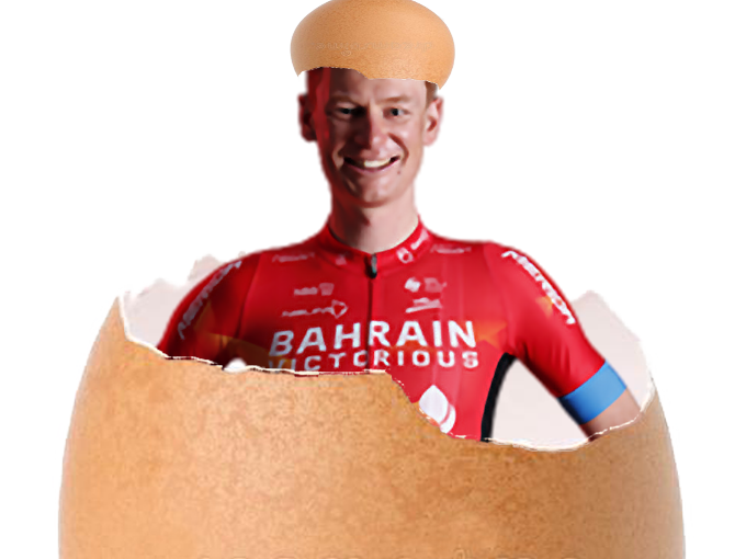 | poule velo haig cycliste bahrain coquille egg cyclisme jack victorious jvc oeuf | ||