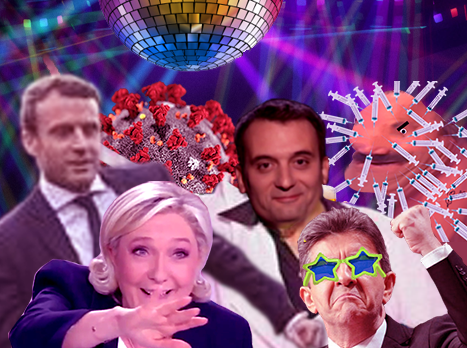 | promenade marine macron lepen melenchon corona danse vaccin philippot covid prout rhume politic manifestation | ||