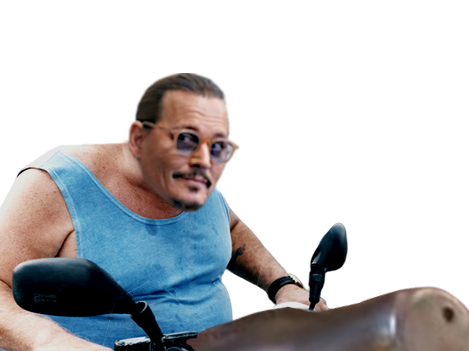 | johnny depp depardieu zinzin megapint narquois smirking malin malicieux complice vitesse scooter moto | ||