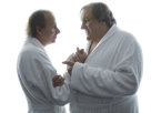 | michel houellebecq depardieu gerard gege ami bff pote celestin kheys peignoir main calin soutien | ||