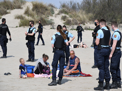 | gendarme macronie covid macron police flic militaire arme plage sandwich fusil dassaut | ||