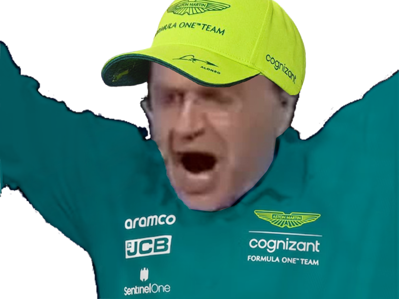 | patrick montel alors peut etre commentateur sport f1 formule 1 aston martin casquette jaune 2023 | ||