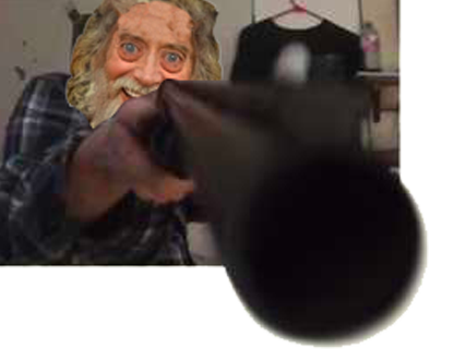 | frodon barbe fou fanatique arme fusil rire barbu | ||