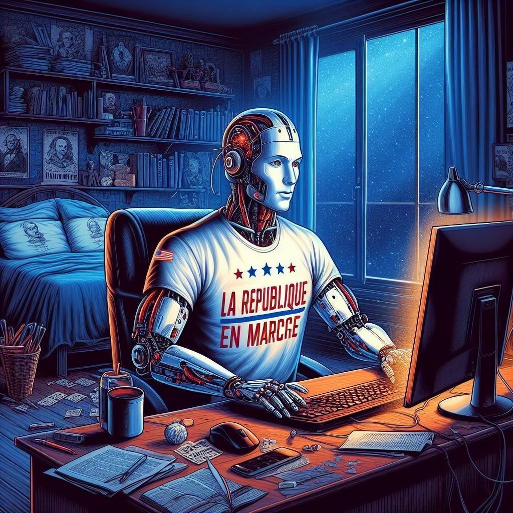 | bot macron lrem en marche pc clavier ecran chaise chambre pisse | ||