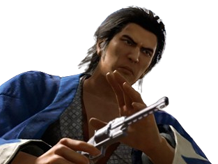 | like a dragon ishin yakuza kiryu kazuma sakamoto ryoma hajime saito pistolet | ||