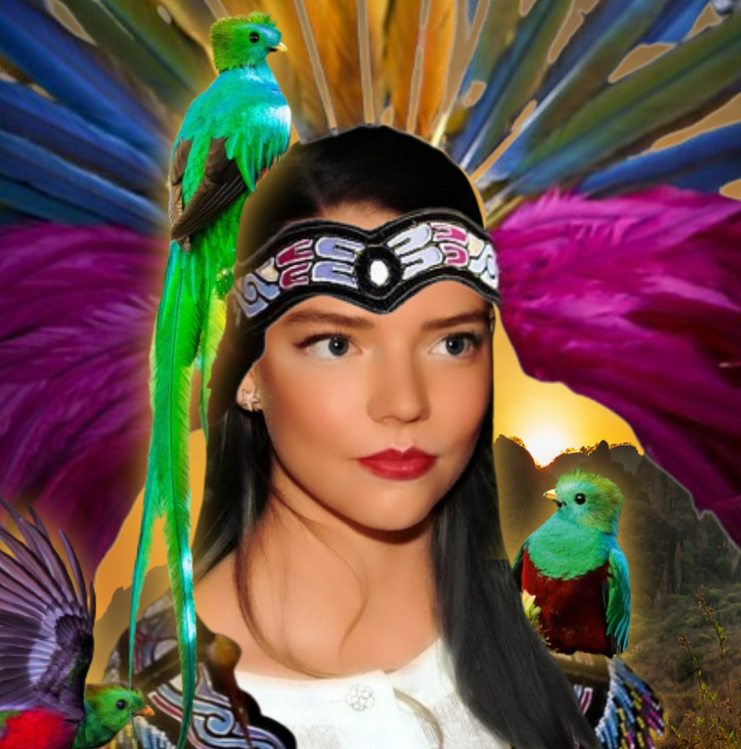 | anya taylor joy quetzal sagrado mexique mexico mexicaine amerique du sud latine azteque maya plumes | ||