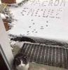 | macron encule chat neige hiver froid pas traces jardin | ||
