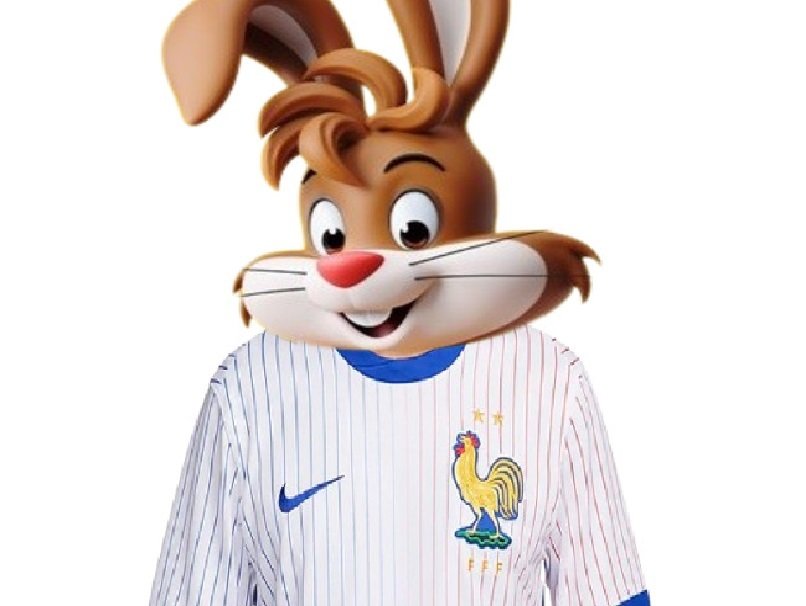 | mascotte nesquik lapin equipe de france football allez les bleus supporter fan exterieur away blanc | ||