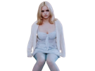 | layla buffalo 66 christina ricci blonde robe bleue assise | ||