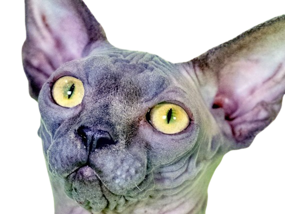 | animal felin chat sphinx bleu yeux verts semi cobby duvet sans poils | ||