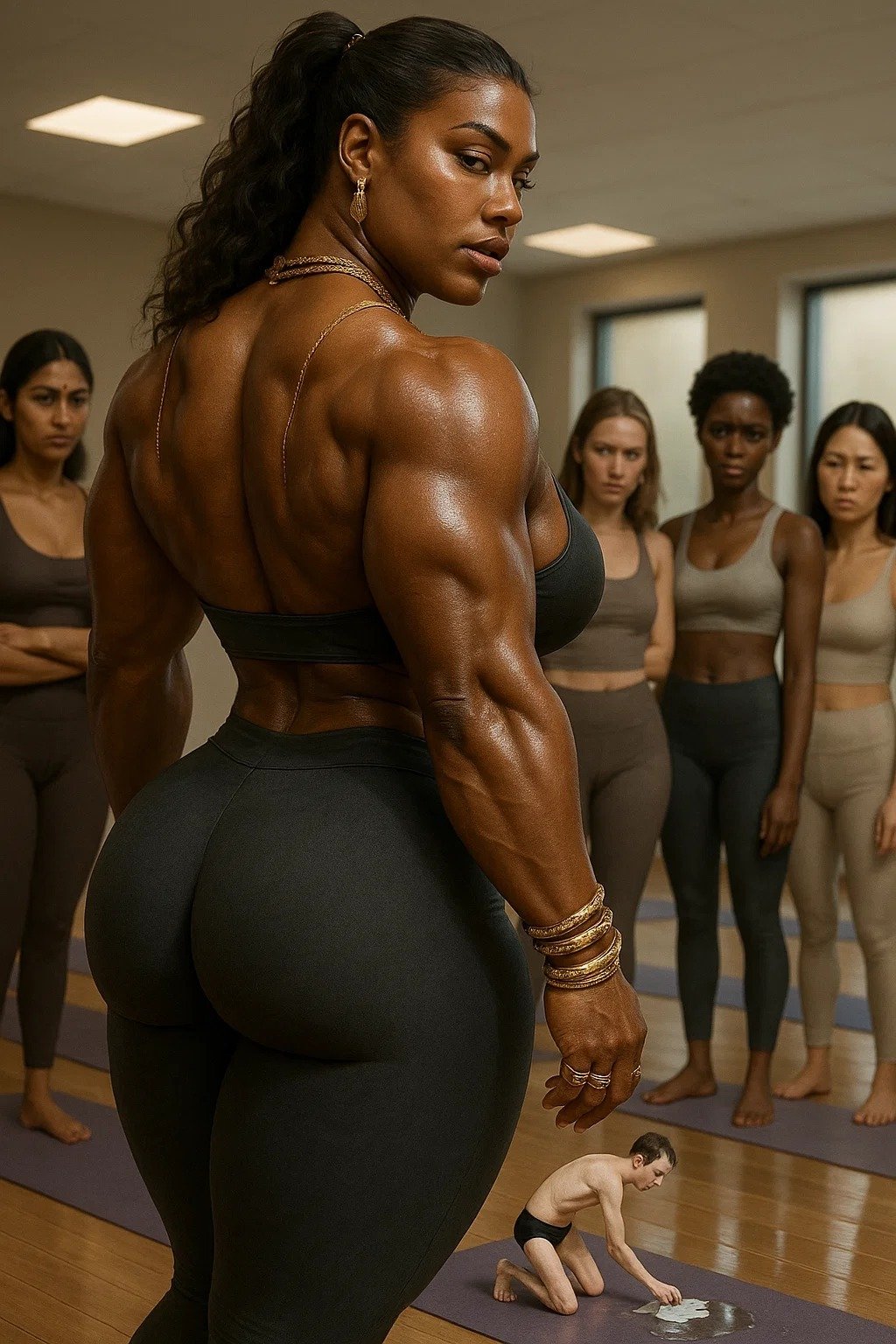 | giantess sexy femme esclave domination noire blanc yoga legging | ||