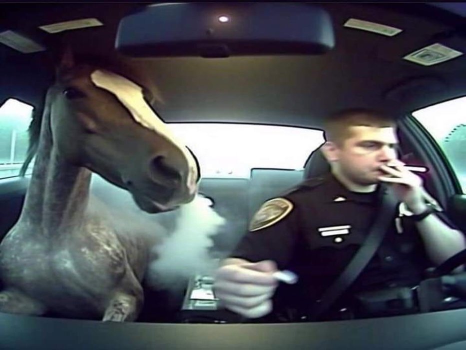 | cheval police voiture flic cigarette fumee drogue beuh weed serein | ||