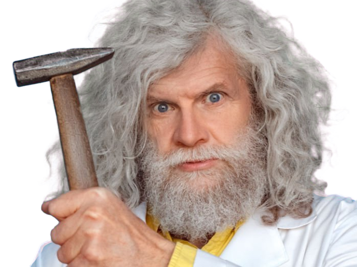 | savant scientifique medecin inventeur professeur prof fou blouse homme vieux age sansnom librededroit cheveuxgris yeuxbleus | ||