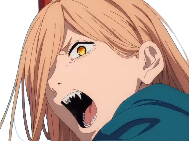 | power chainsaw man anime manga demon diablesse blood devil hominidemone sang waifu femme excentrique cheveux blonds yeux jaunes cornes rouges | ||