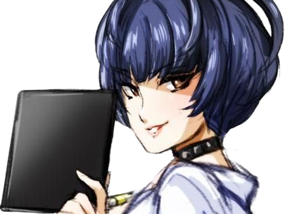 | tae takemi persona 5 p5 jeu video rpg medecin punk gothique femme cheveux bleus fonces yeux marrons blouse blanche waifu | ||