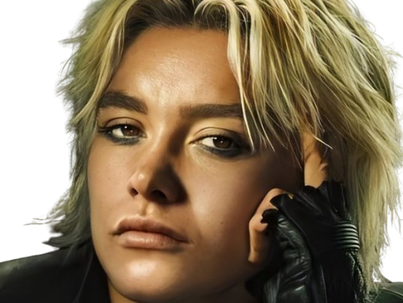 | florence pugh yelena belova thunderbolts actrice britannique anglaise blonde cheveux courts yeux verts femme | ||
