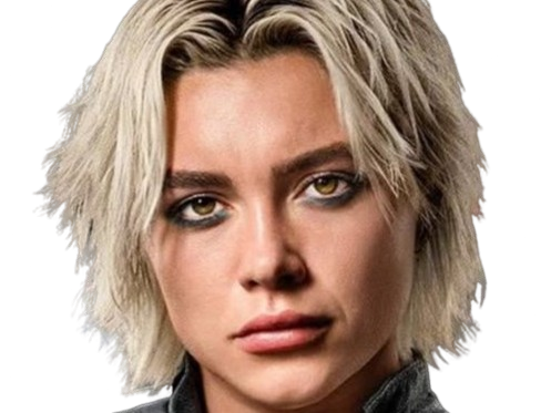 | florence pugh yelena belova thunderbolts actrice britannique anglaise blonde cheveux courts yeux verts femme | ||