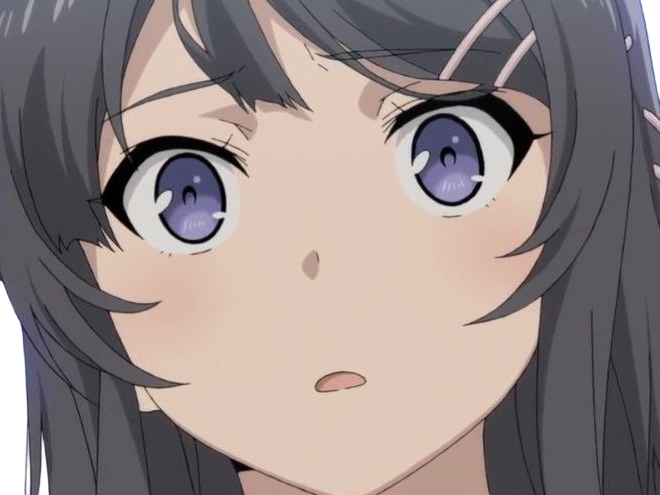 | sakurajima mai seishun buta yarou aobuta anime manga waifu femme actrice lyceenne bunny girl cheveux noirs yeux violets | ||
