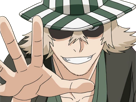 | kisuke urahara bleach anime manga shinigami capitaine 12eme division exile scientifique chapeau homme cheveux blonds yeux gris | ||