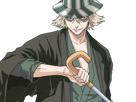 | kisuke urahara bleach anime manga shinigami capitaine 12eme division exile scientifique chapeau homme cheveux blonds yeux gris | ||