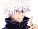 | satoru gojo exorciste professeur classe s jujutsu kaisen jjk anime manga homme le plus fort sans bandeau cheveux blancs yeux bleus | ||