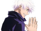 | satoru gojo exorciste professeur classe s jujutsu kaisen jjk anime manga homme le plus fort sans bandeau cheveux blancs yeux bleus | ||