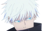 | satoru gojo exorciste professeur classe s jujutsu kaisen jjk anime manga homme le plus fort sans bandeau cheveux blancs yeux bleus | ||