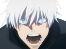 | satoru gojo exorciste professeur classe s jujutsu kaisen jjk anime manga homme le plus fort sans bandeau cheveux blancs yeux bleus | ||