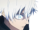 | satoru gojo exorciste professeur classe s jujutsu kaisen jjk anime manga homme le plus fort sans bandeau cheveux blancs yeux bleus | ||
