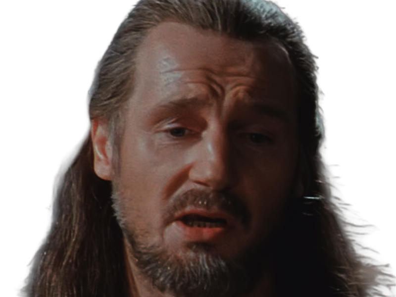 | qui gon jinn star wars sw episode i ep1 la menace fantome the phantom menace maitre jedi gris cheveux bruns yeux bleus liam neeson | ||