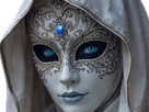 | masque carnaval mystere venitien italie capuche blanc bleu | ||