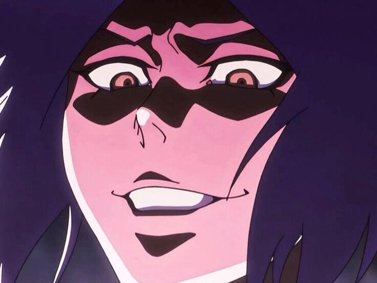 | yoruichi shihouin bleach peau mate yeux ambre jaune cheveux violets desdemone loco bloop | ||