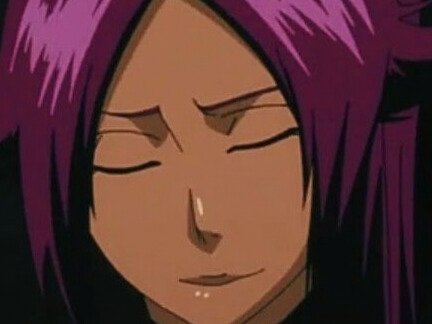 | yoruichi shihouin bleach peau mate yeux ambre jaune cheveux violets desdemone loco bloop | ||
