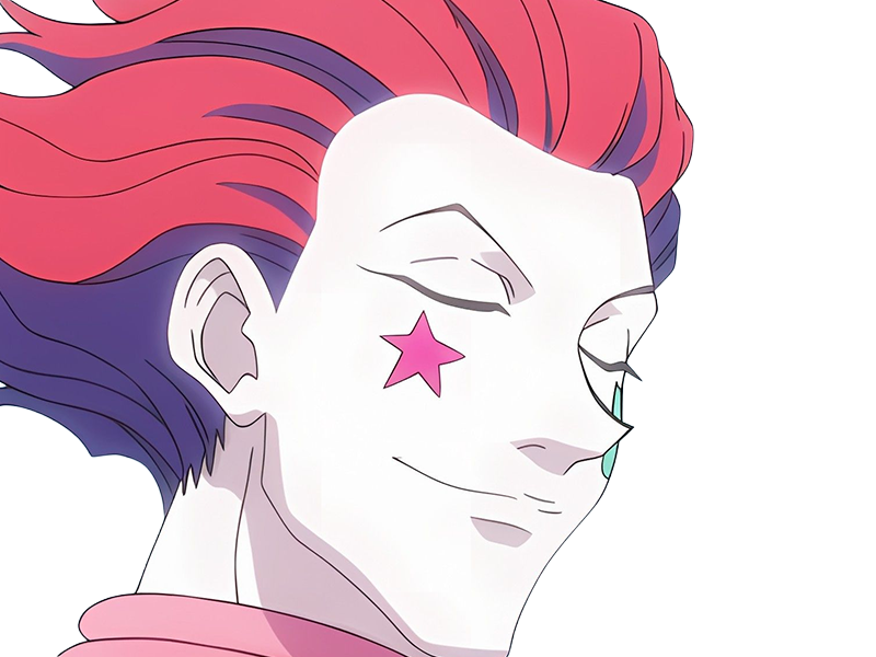 | hisoka morow hunter x hunterxhunter anime manga cheveux rouge yeux jaunes clown magicien nen transformation assassin sociopathe | ||