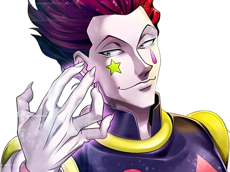 | hisoka morow hunter x hunterxhunter anime manga cheveux rouge yeux jaunes clown magicien nen transformation assassin sociopathe | ||