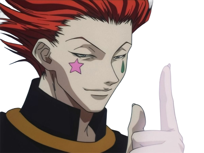 | hisoka morow hunter x hunterxhunter anime manga cheveux rouge yeux jaunes clown magicien nen transformation assassin sociopathe | ||