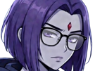 | raven teen titans violet pourpre dc comics demi demone trichoporphyree indigo lunettes | ||