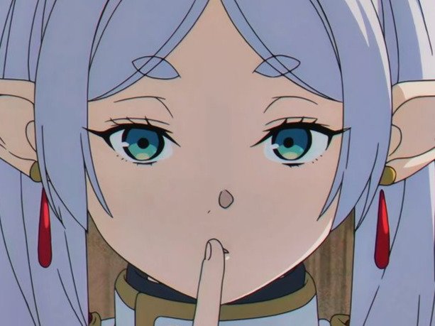 | frieren sousou elfe cheveux blanc oreilles pointues boucles oreille rouge bloop | ||