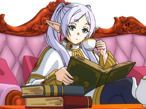 | frieren sousou elfe cheveux blanc oreilles pointues boucles oreille rouge bloop | ||