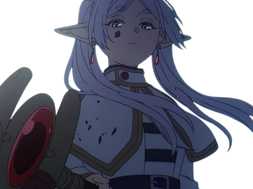 | frieren sousou elfe cheveux blanc oreilles pointues boucles oreille rouge bloop | ||