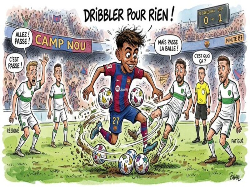 | lamine yamal caricature dribble drible dribles dribbles pour rien dribbler surcote grigri dessin | ||