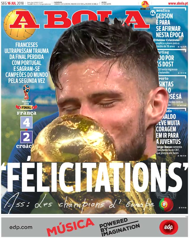 | monde giroud meilleur journaux alpha ballon joueur une buteur dor journal champion felicitations other du bg | ||